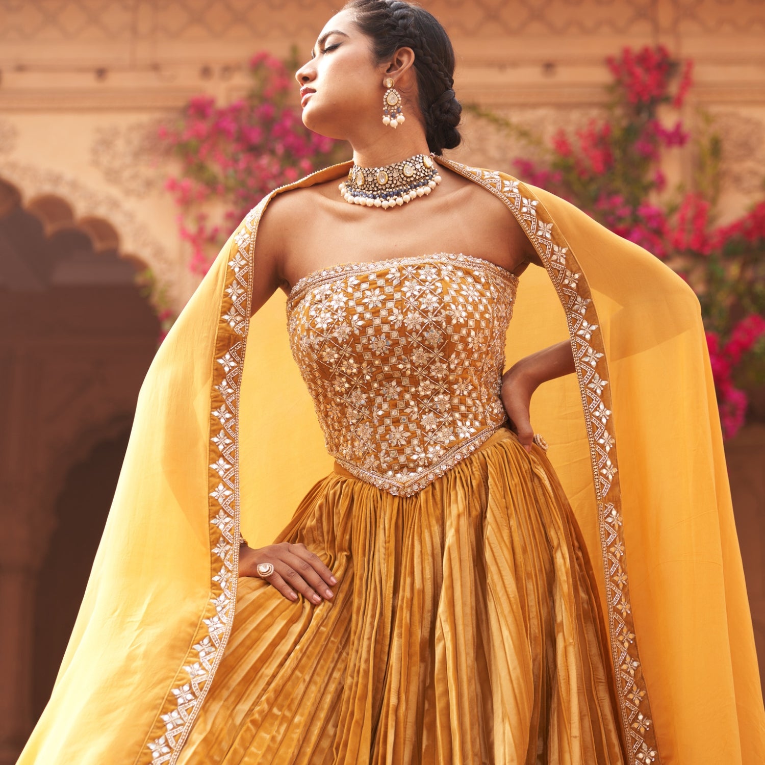Syah pleated lehenga set