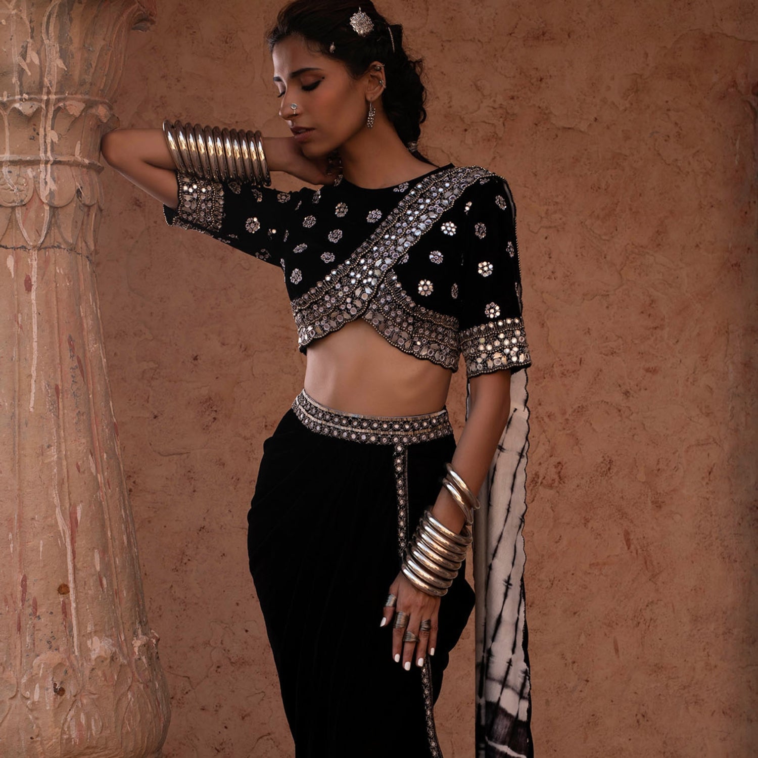 Syah drape saree set